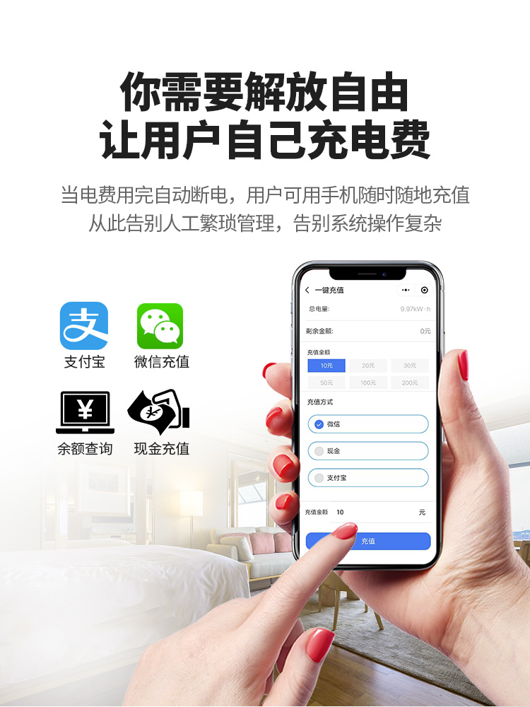 IC卡電表繳費不方便,需要到指定的地方去進行繳費,物業(yè)的工作人員下班時間又無法進行購電,即使購點后還要在到電表讀取一次IC卡。根據市場需求,遠程充值電表預付費抄表系統不存在工作人下班時間無法進行購電,也不需要繁瑣的插卡,輕輕松松的就可以使用微信、支付寶、APP等實現手機繳費。即使不會使用手機支付的部分人,也可以到物業(yè)現金繳費,物業(yè)在系統后臺遠程對電表進行充值。